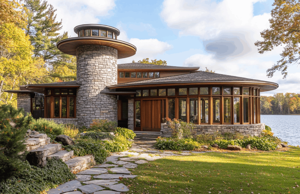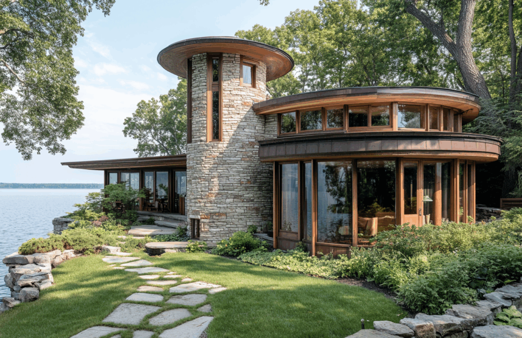 Lake Horizon Houses, organik mimarlık ilkelerini doğrudan yansıtan, doğa ile bütünleşmiş bir kıyı konutudur. Mimari form, göl kıyısının doğal eğrilerini izleyen yuvarlak ve dairesel plan kurgusu üzerine inşa edilmiştir. Bu yaklaşım, yapıyı doğaya sonradan eklenmiş bir nesne olmaktan çıkararak, çevresinin devamı gibi algılanmasını sağlar.