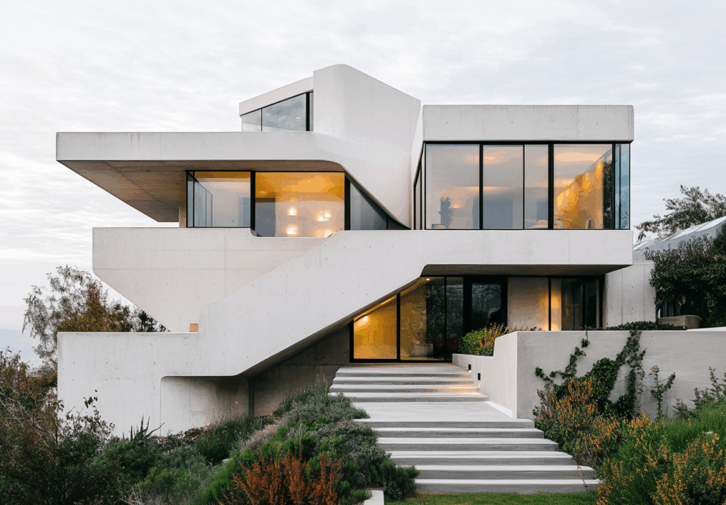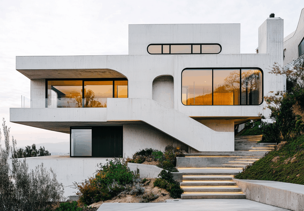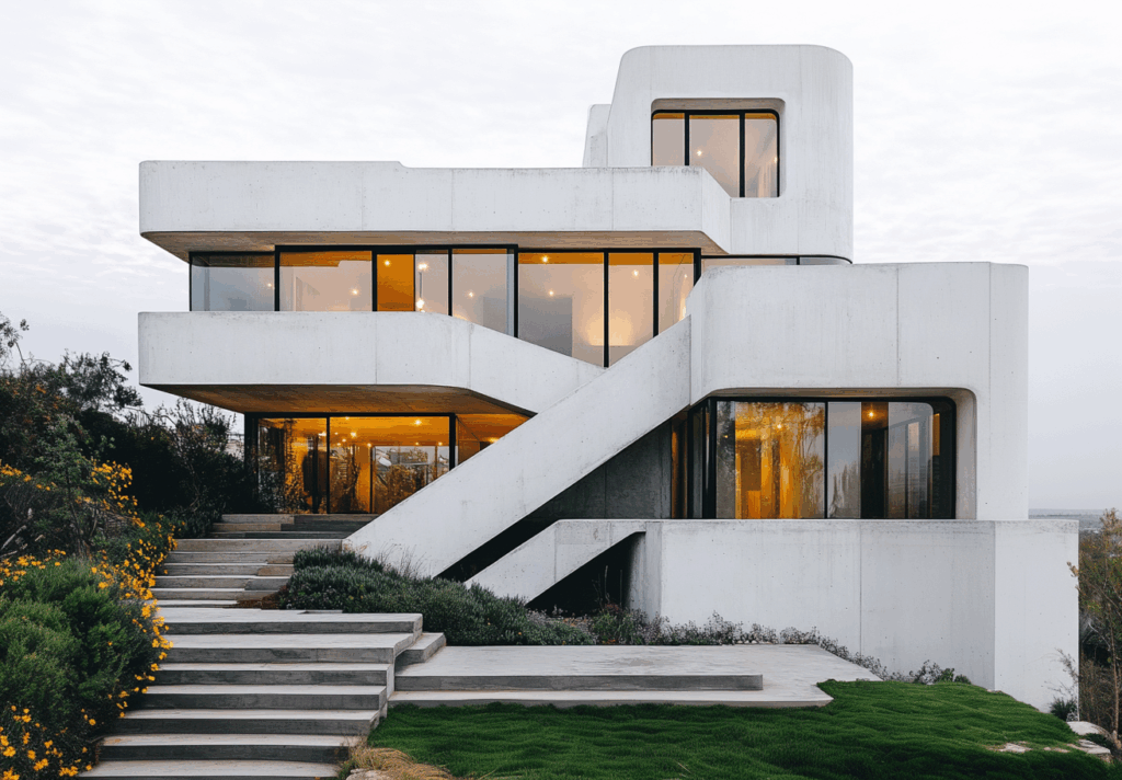 Yumuşak köşeler, kesintisiz yüzey geçişleri ve katmanlı çıkmalar, yapıyı çevresiyle bütünleştiren bir morfolojik uyum yaratır.