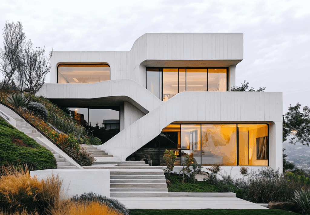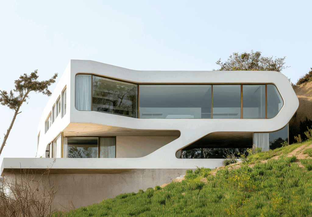 “Fluid Form Residence”, doğayla yarışmayan; aksine doğanın akışına karışan bir mimari varlık olarak tanımlanabilir.