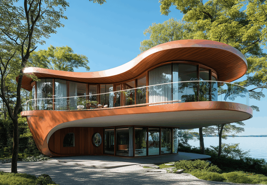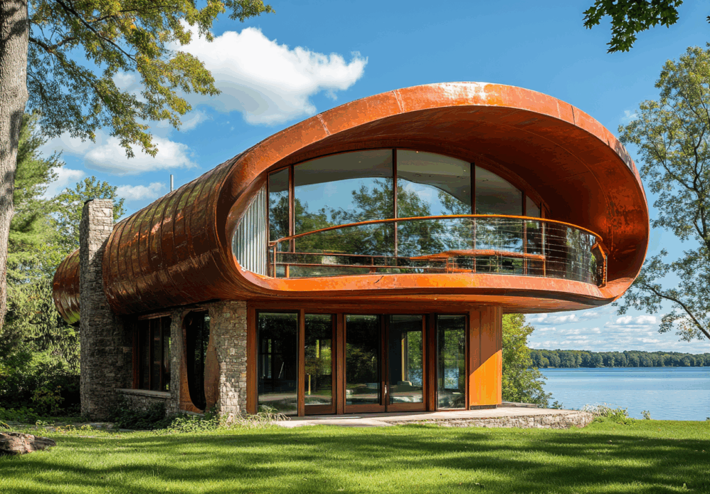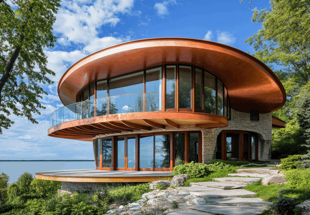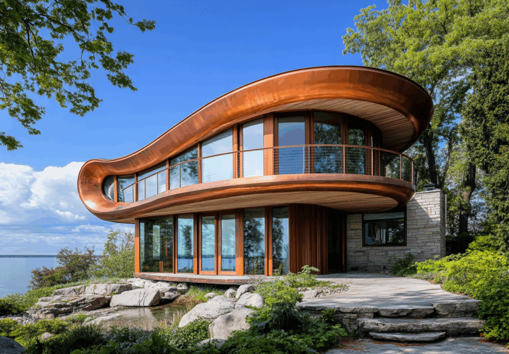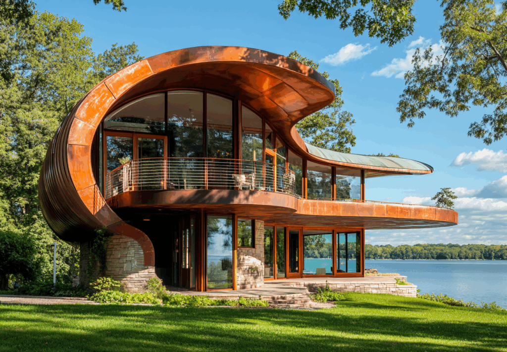 Copper Wave Residence, göl kıyısının yumuşak rüzgârlarını ve suyun hareketini mimari forma dönüştüren bir konuttur.