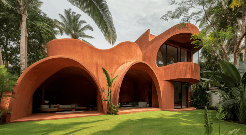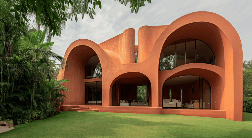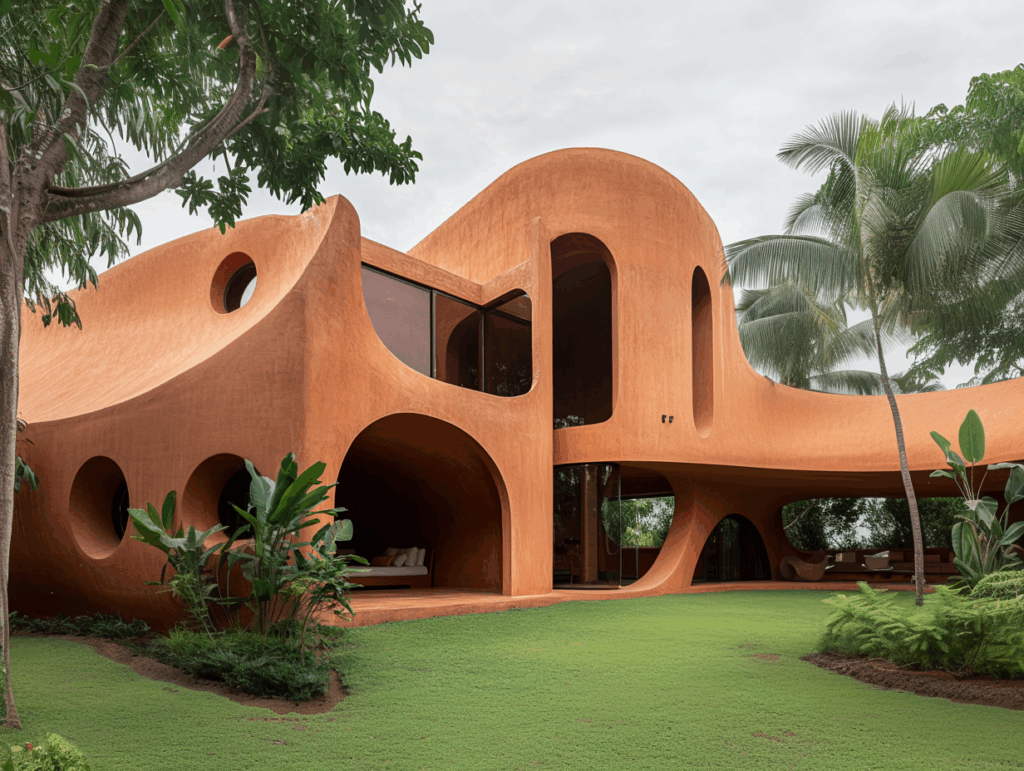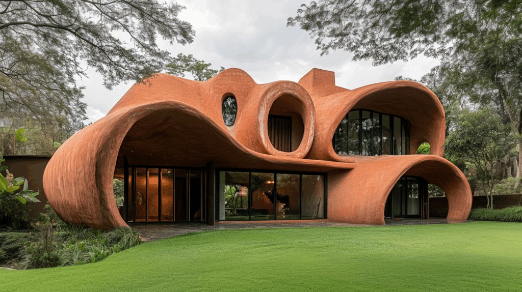Endüstriyel formlara karşı, elle şekillenen akışkan mimarinin geri dönüşünü temsil eder.