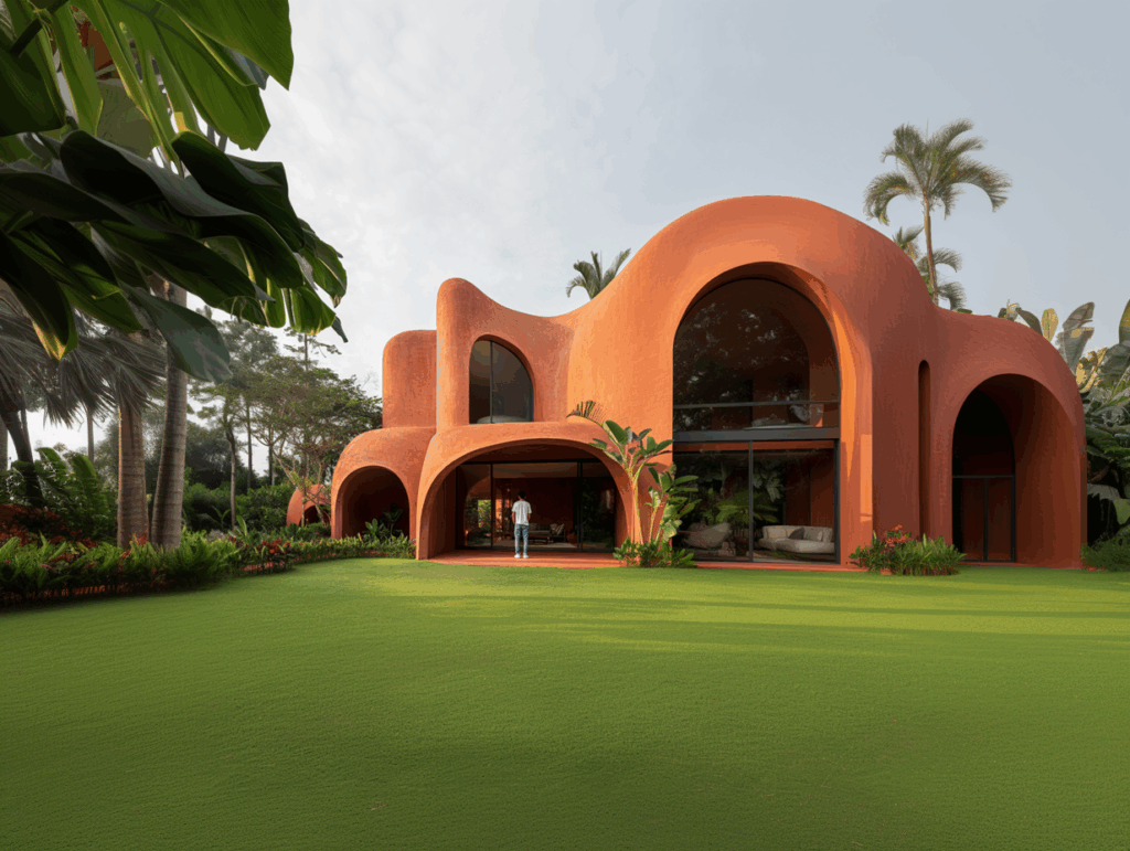 Terracotta Habitat, doğanın ritmini izleyen yumuşak kemer formu ve toprak tonlarıyla biçimlenmiş bir yapıdır.