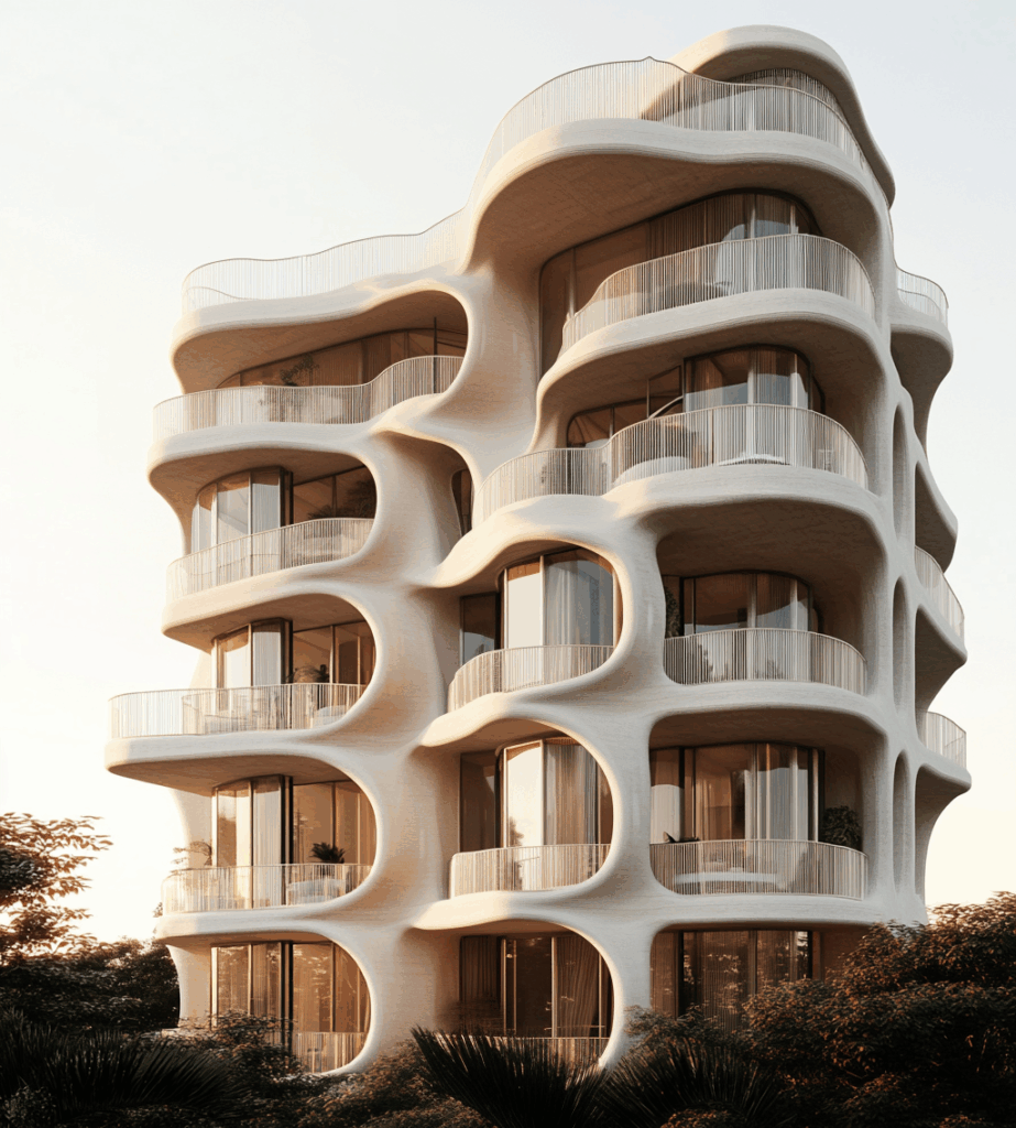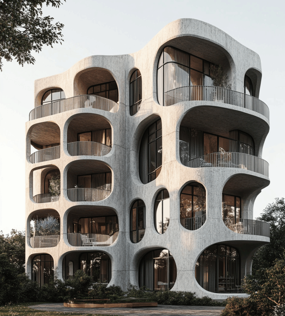 “Organik formlar, kentsel konutlara doğanın akışını taşır.” – A.B.M.