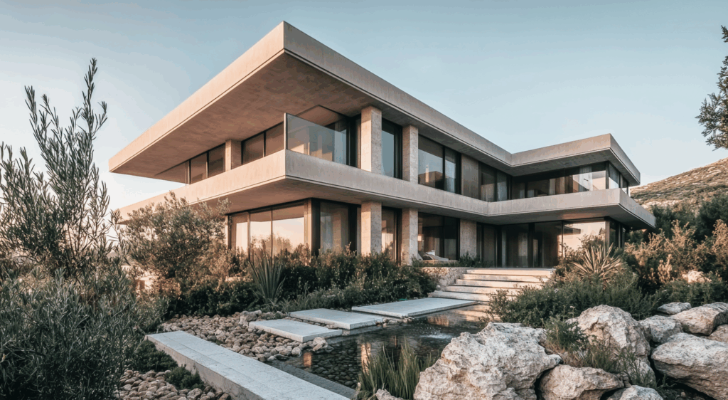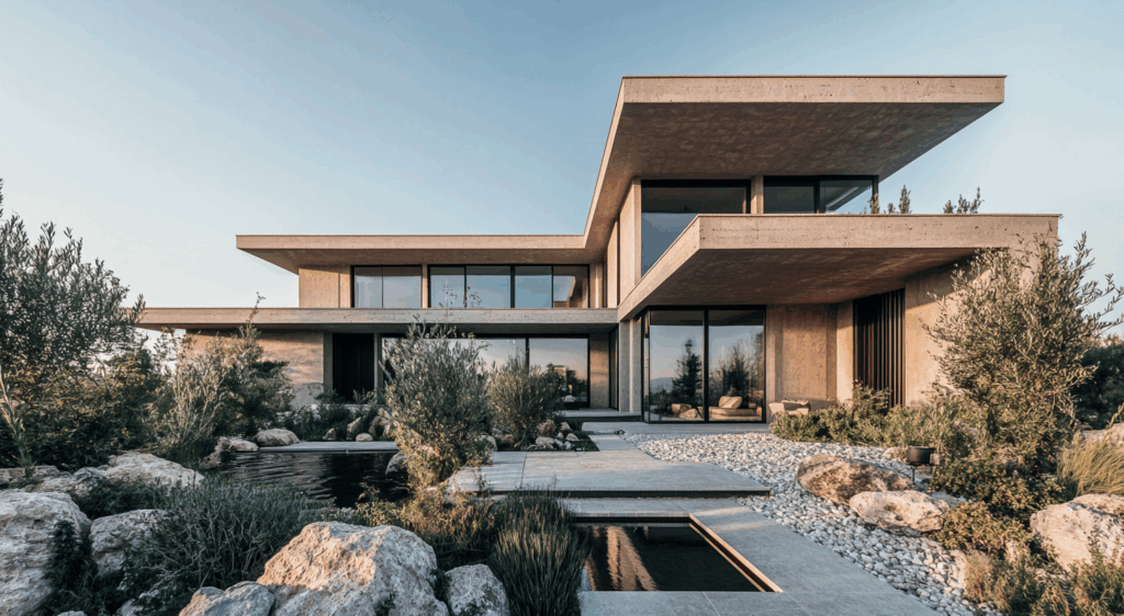 “Terra Horizon Villas”, doğal malzeme ile modern geometri arasındaki dengeyi yakalayan bir konut tipolojisidir.