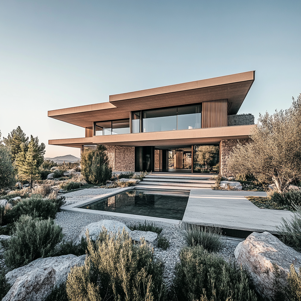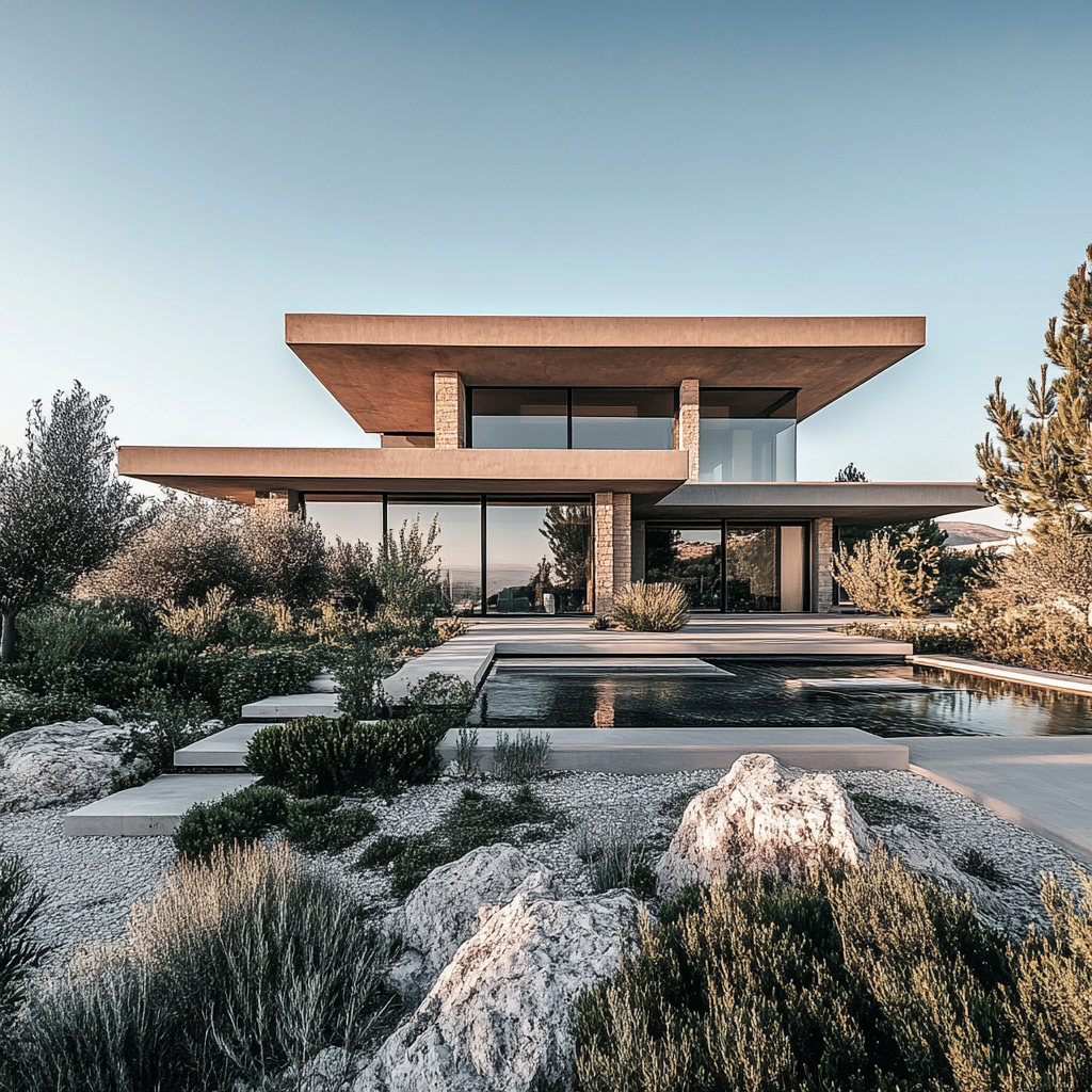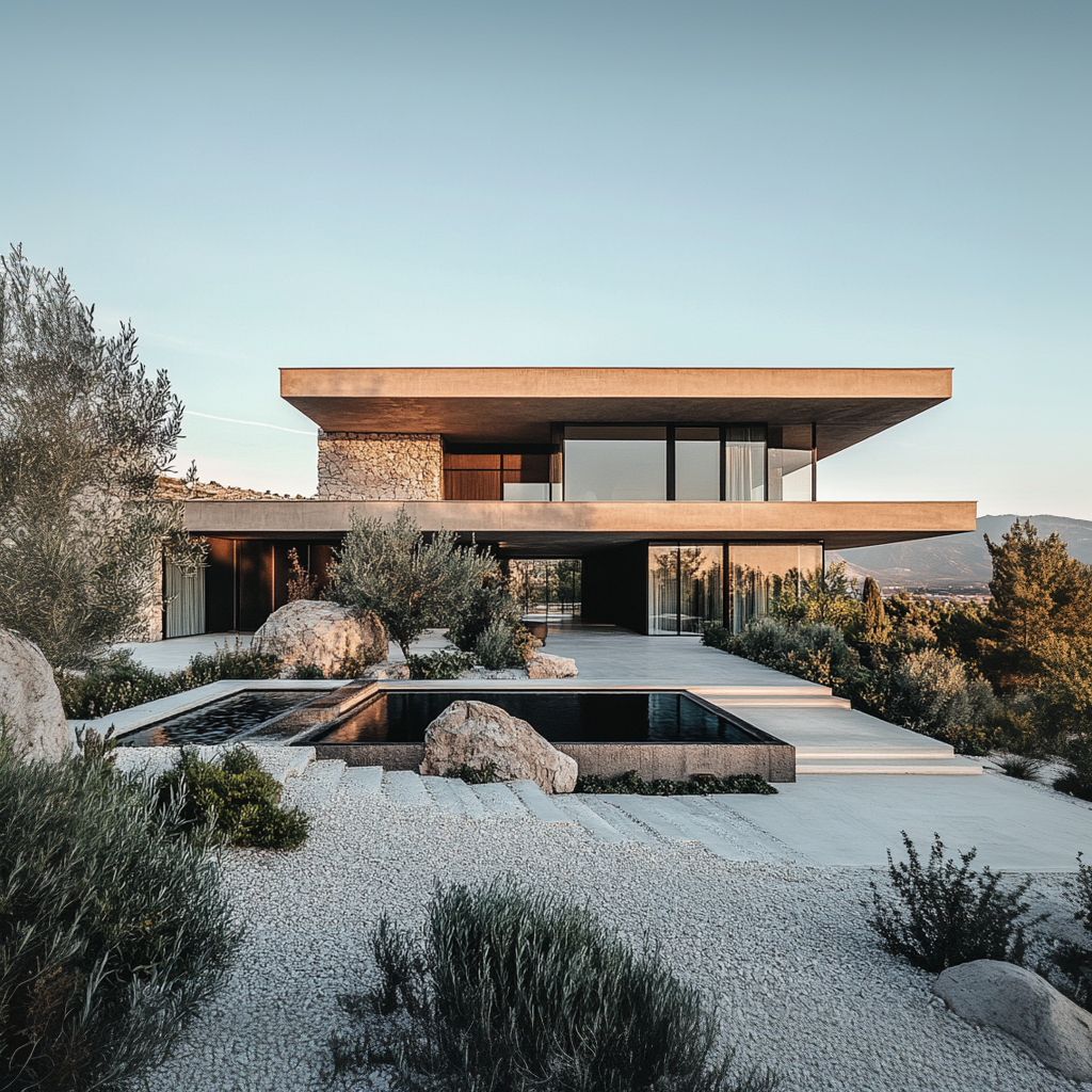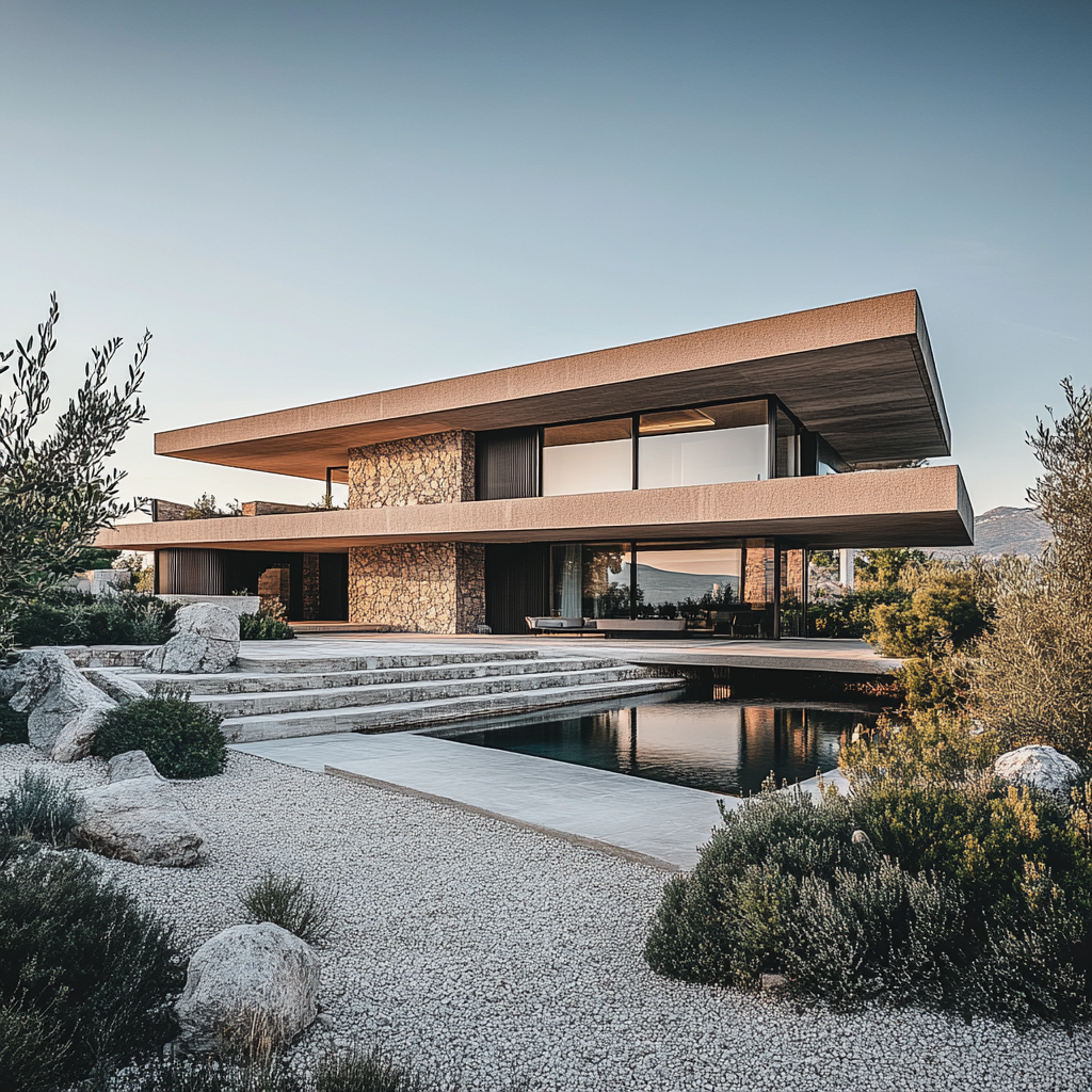 Bu yapı, doğayla uyumlu çağdaş yaşamın manifestosudur; ışıkla, taşla ve rüzgârla konuşan bir konut formu.