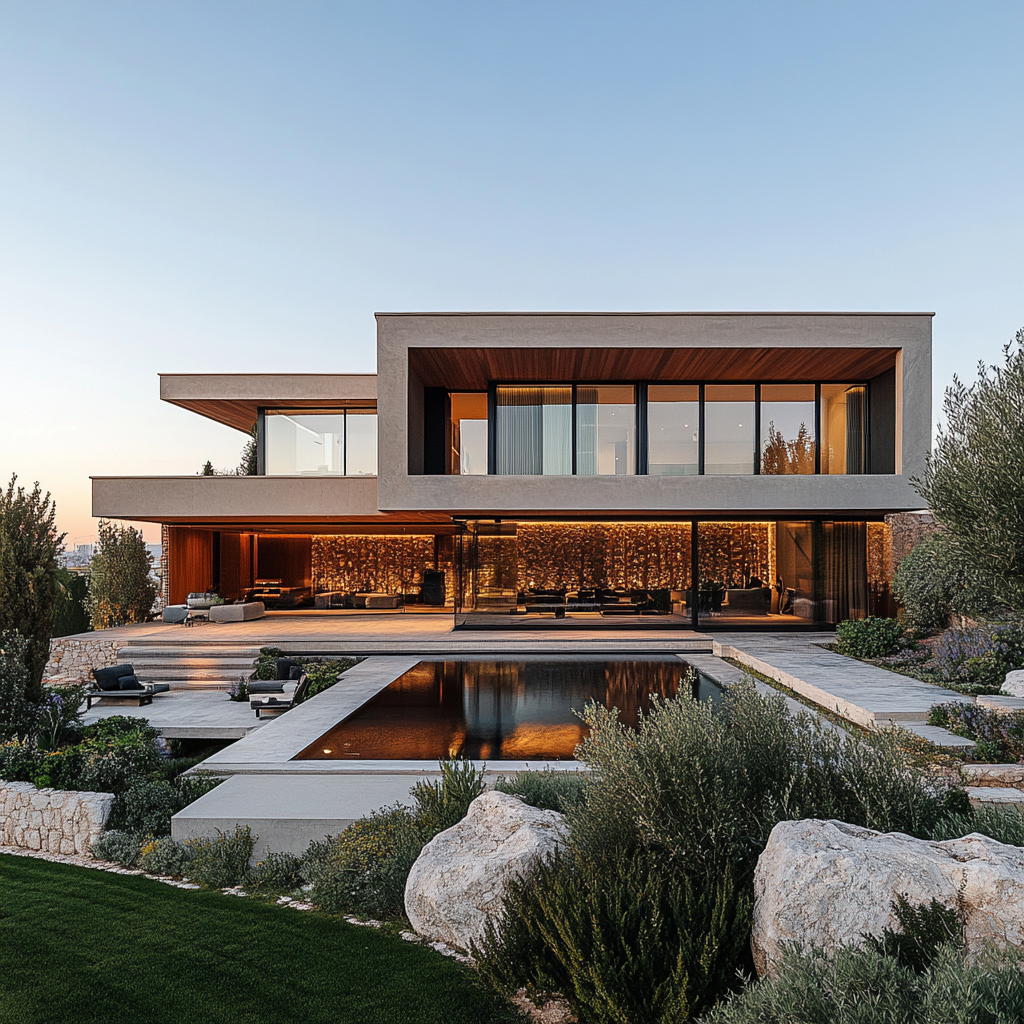 Yapı, taşın kalıcılığını modern yaşamın açıklığıyla birleştirir; ışıkla yıkanan yüzeyleri, günün her anında farklı bir kompozisyon oluşturur.