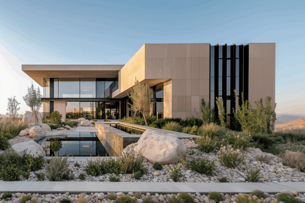- Sürdürülebilirlik: Doğal taşın ısı yalıtım özelliği, pasif güneş kontrolü, düşük bakım gerektiren peyzaj
