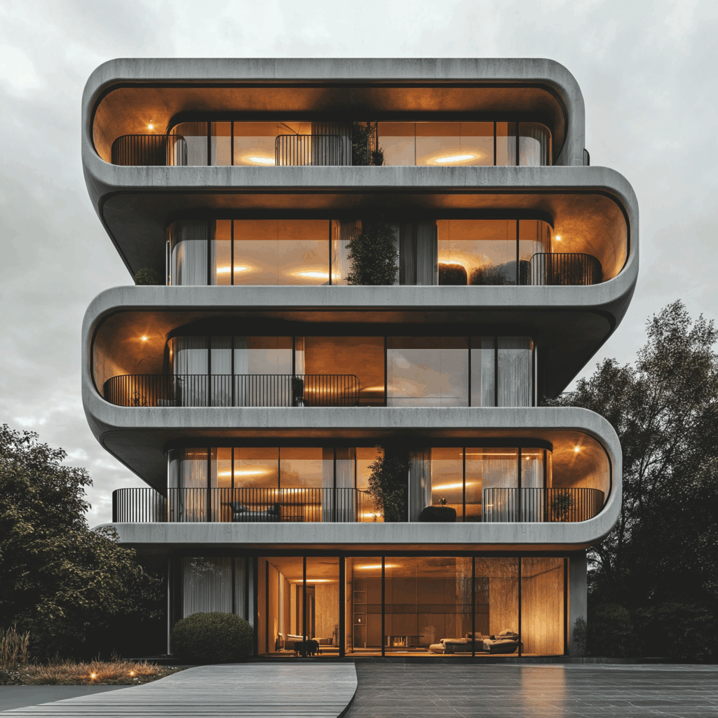 “Orbiform Residences”, betonun kütleselliğini, formların yumuşak zarafetiyle dengeleyen bir estetik yaklaşımı temsil eder.
