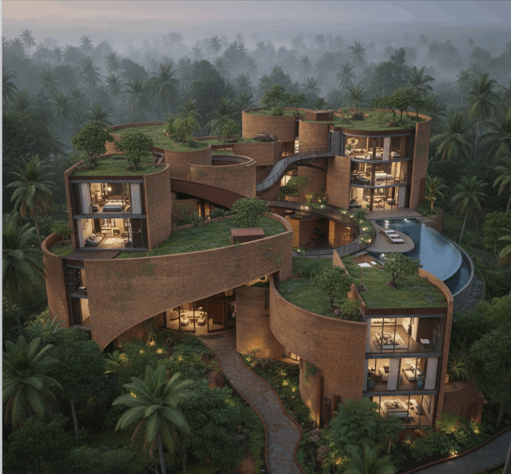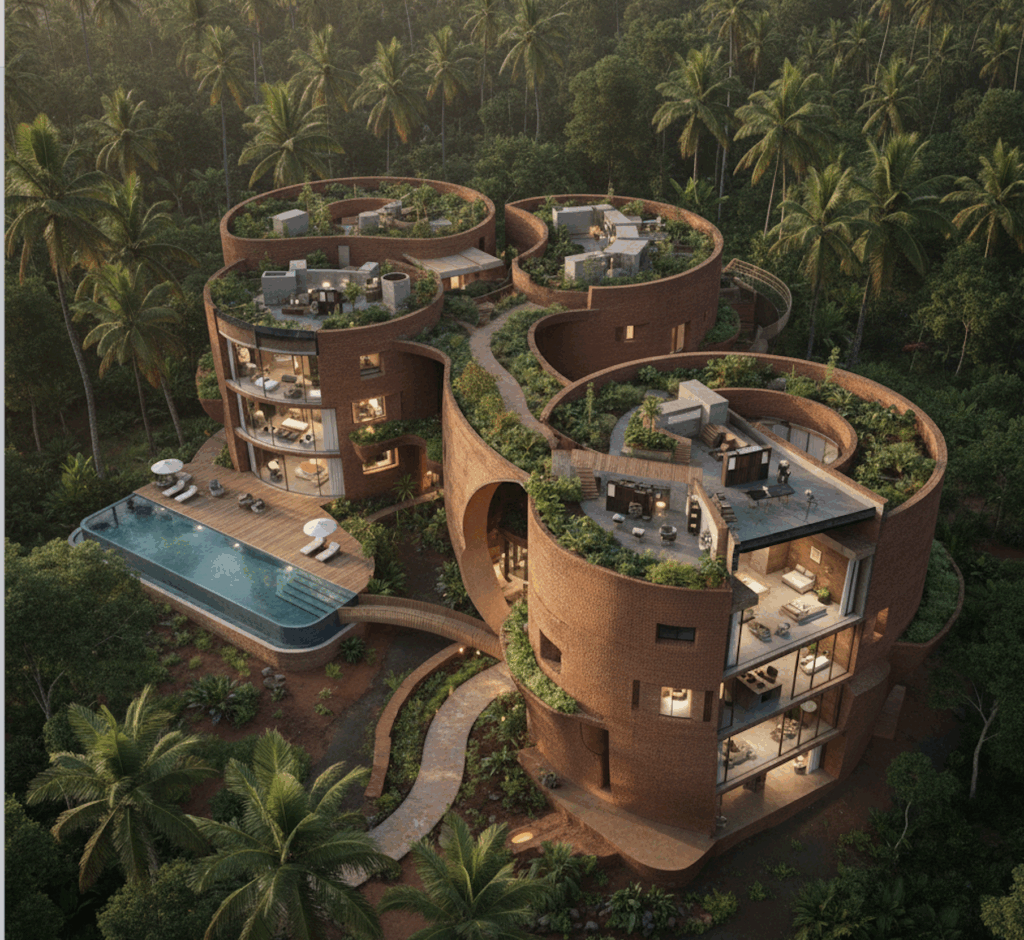 • Yaklaşım: Sürdürülebilir yerel malzeme kullanımıyla doğayla bütünleşen organik mimari