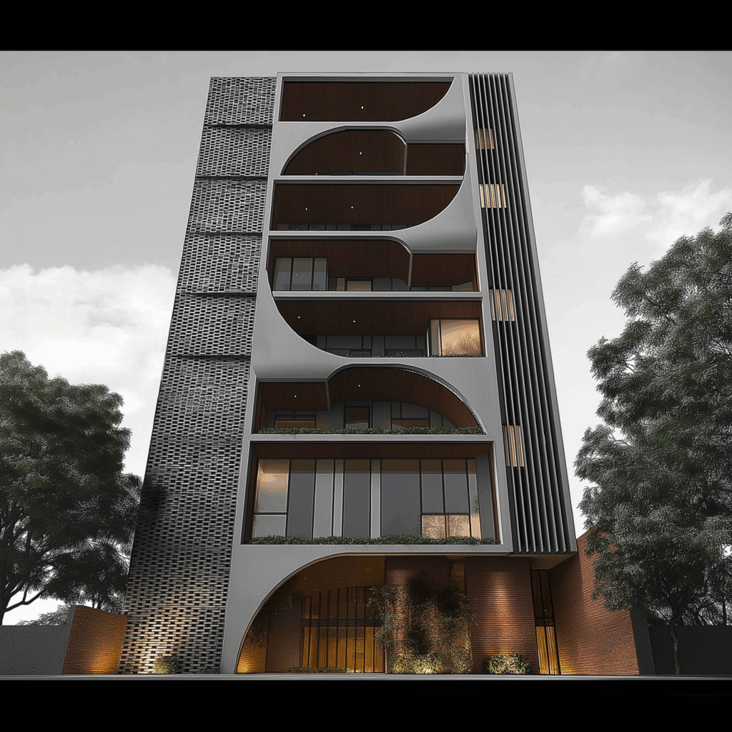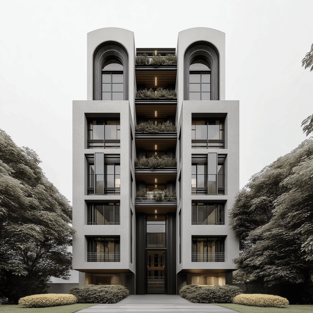 - Bağlam: Kentsel yoğunluk içinde nefes alan dikey cephe kurgusu