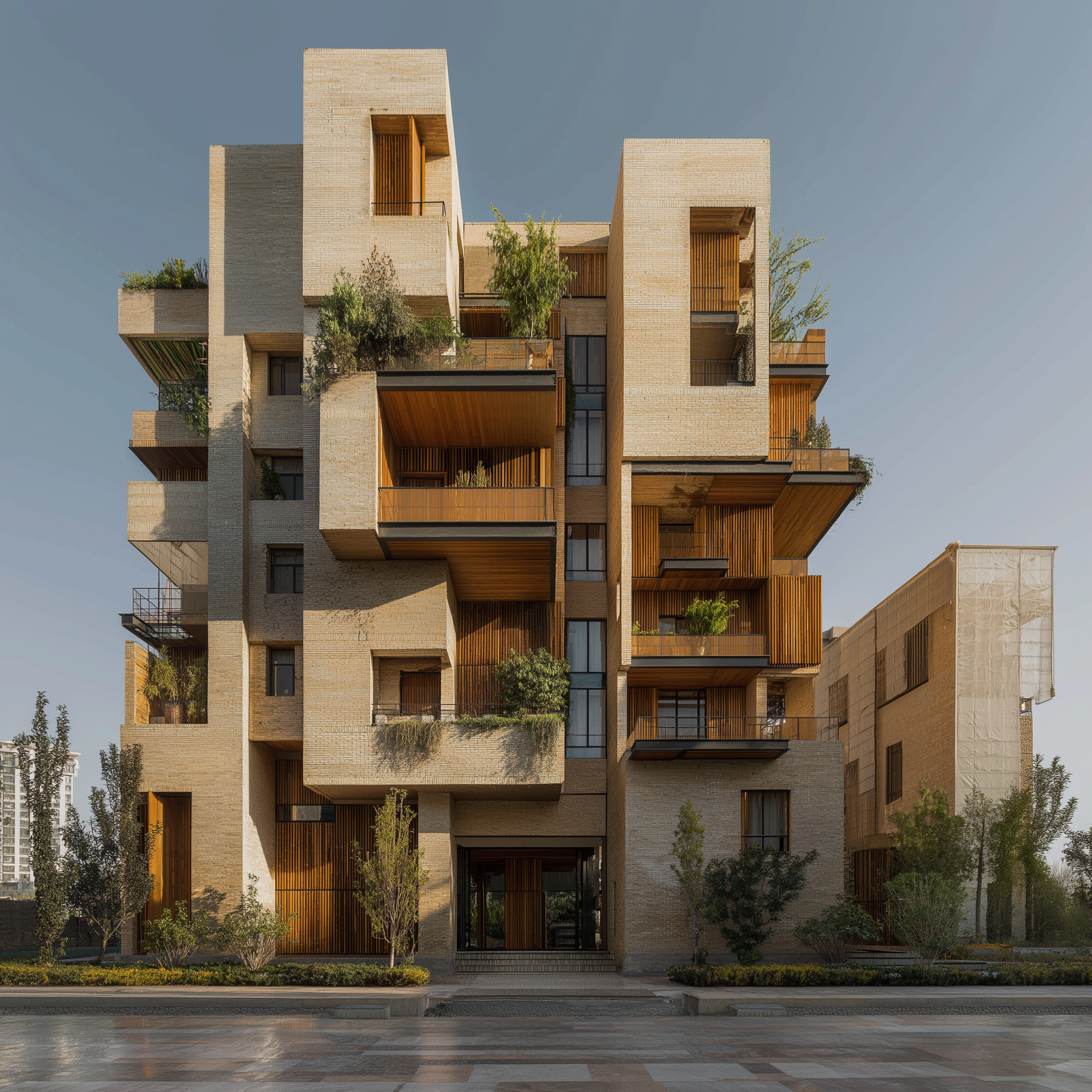 Ara Katlar: Kat bahçeleri + ahşap panelli balkonlar