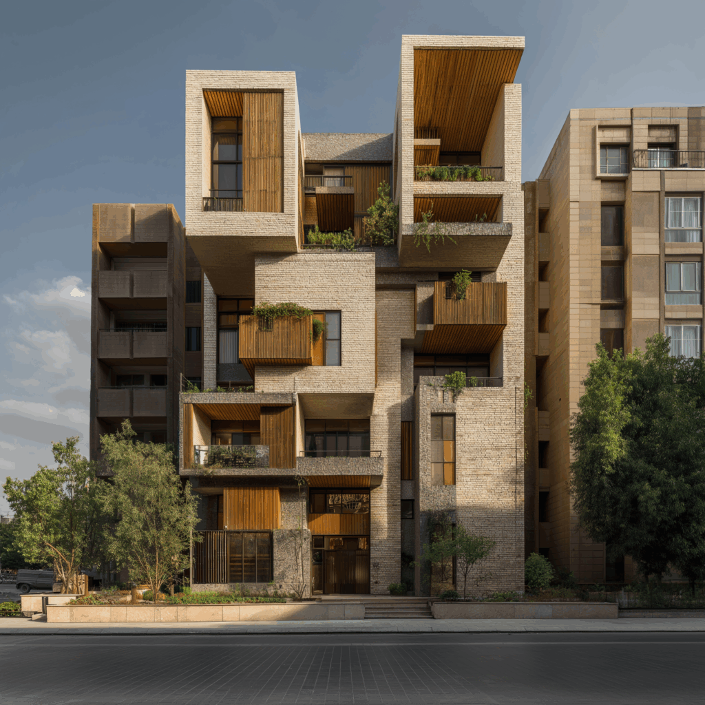 - Bağlam: Yoğun kentsel doku içinde nefes alan dikey konut modeli