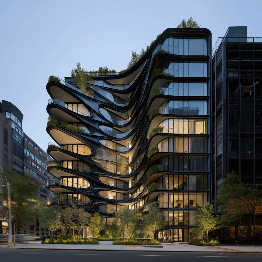 - Bağlam: Yoğun şehir dokusu içinde, organik form diliyle tanımlanan akışkan cepheli konut kompleksi