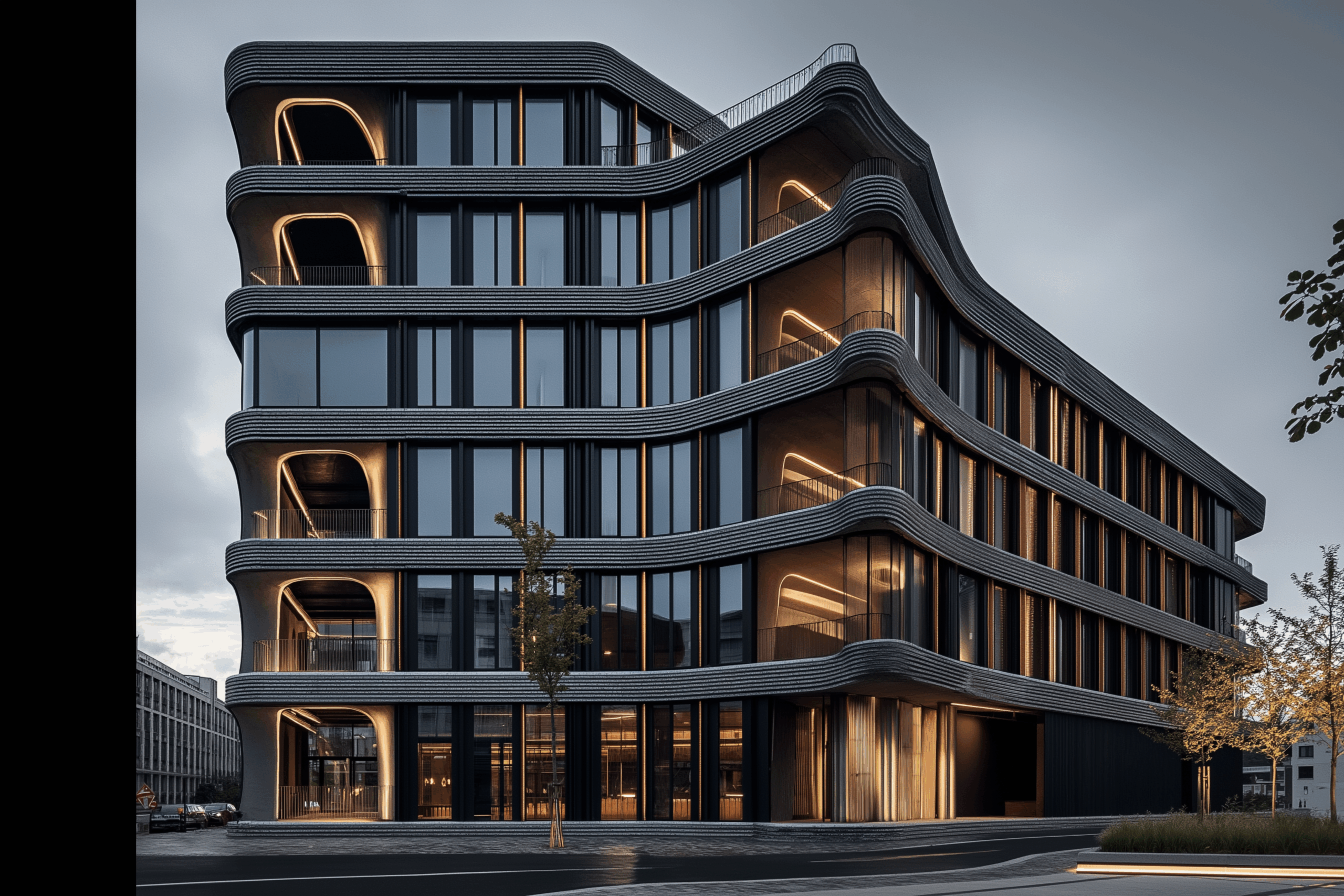 Formun kıvrımları, şehrin rüzgâr akış haritasıyla ilişkilendirilmiş; her katın köşe dönüşleri, doğal hava akımı ve gün ışığı simülasyonuna göre biçimlenmiştir.
