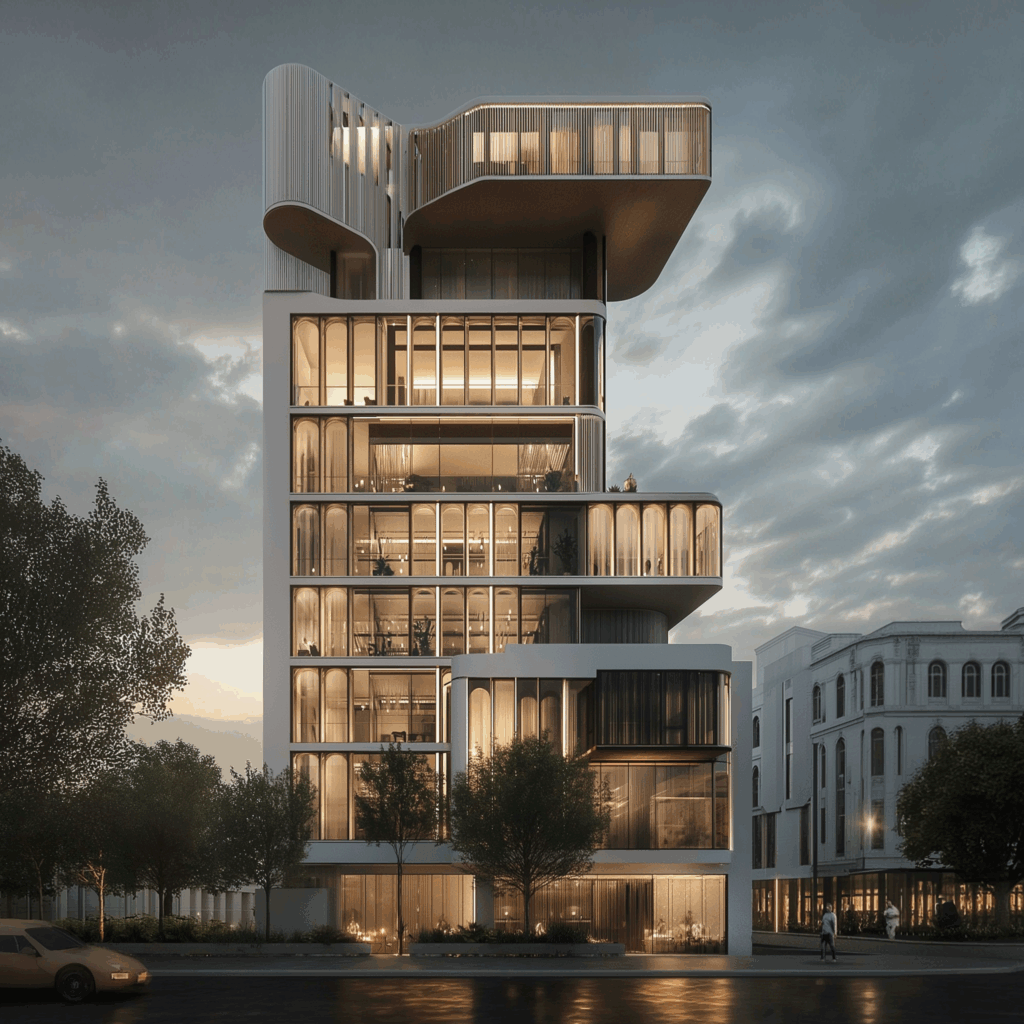 - Yaklaşım: Akışkan geometrilerin, ışık çizgileriyle bütünleştiği post-fütürist tasarım