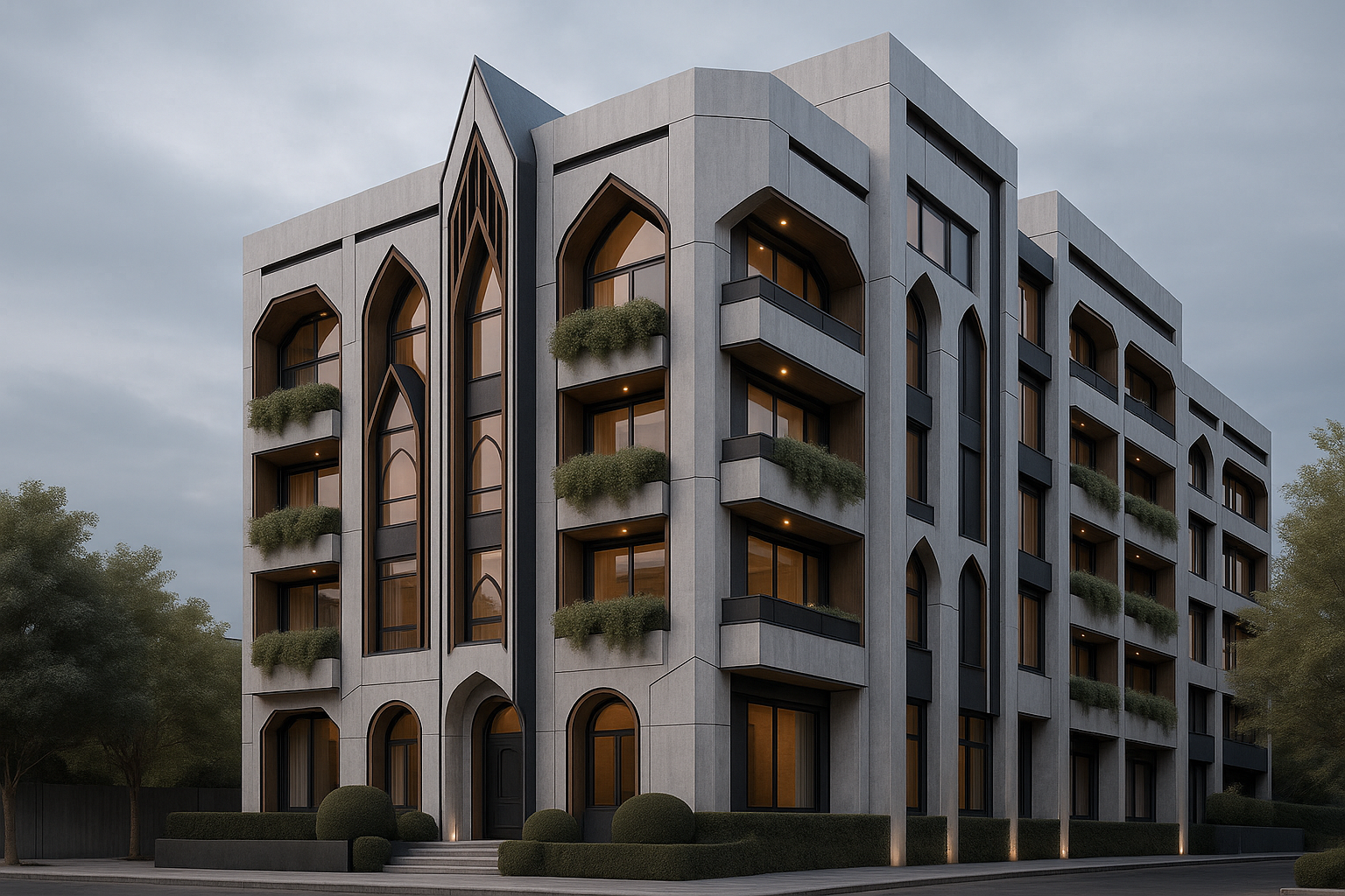 Proje Kartı Yapı, gotik mimarinin düşeyliğini çağdaş bir minimalizmle yeniden yorumlayan bir konut kompleksi olarak tasarlandı.Cephe formu, sivri kemerler ve köşeli geometriler üzerinden ışığın...
