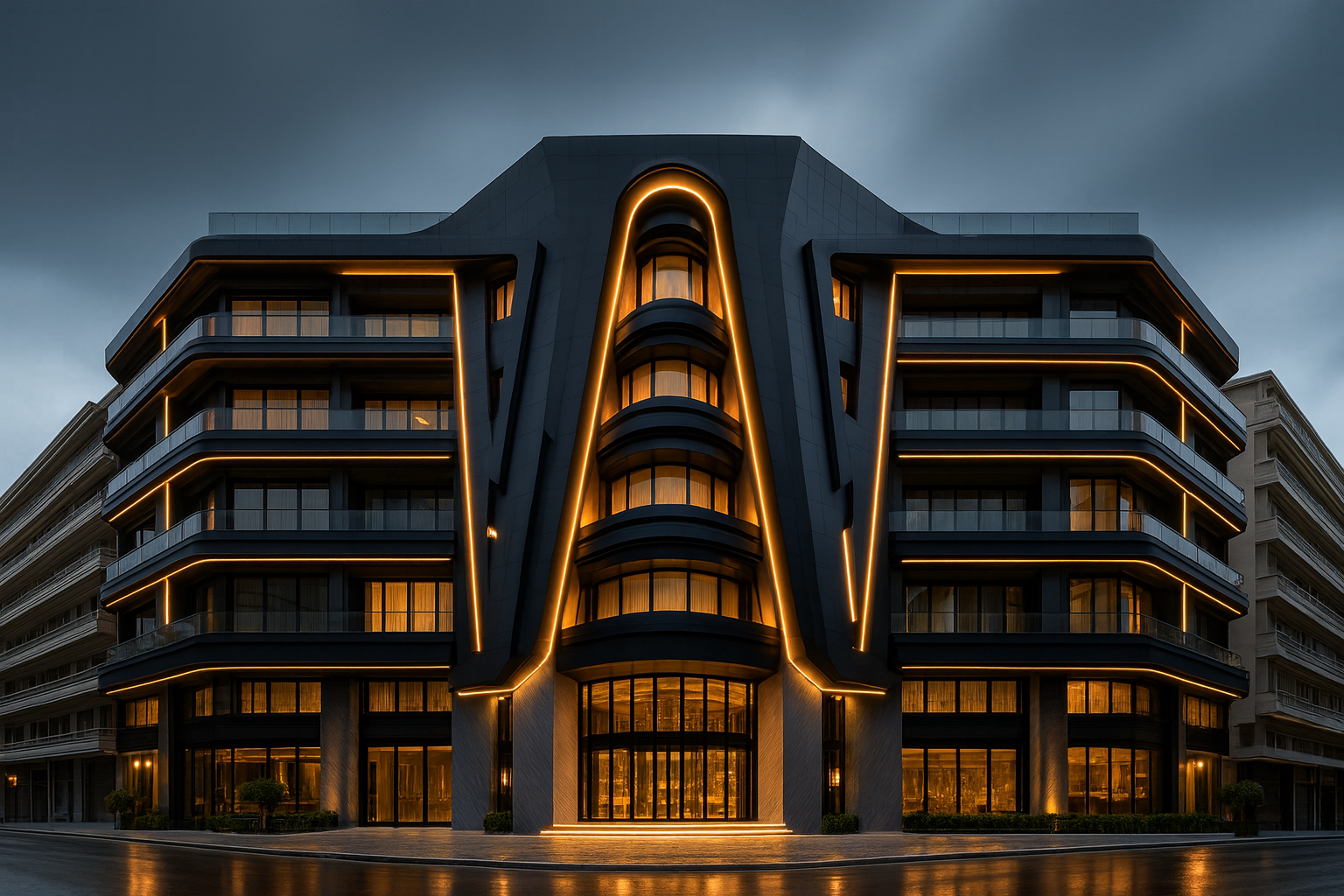 Proje Kartı “Noir Line Residences”, şehrin dinamizmini geometrik sadelik ve dramatik ışıkla yeniden tanımlar. Karanlık cephe yüzeyleri, ışığın altın kesit mantığıyla dağılmış çizgisel hatlarla...
